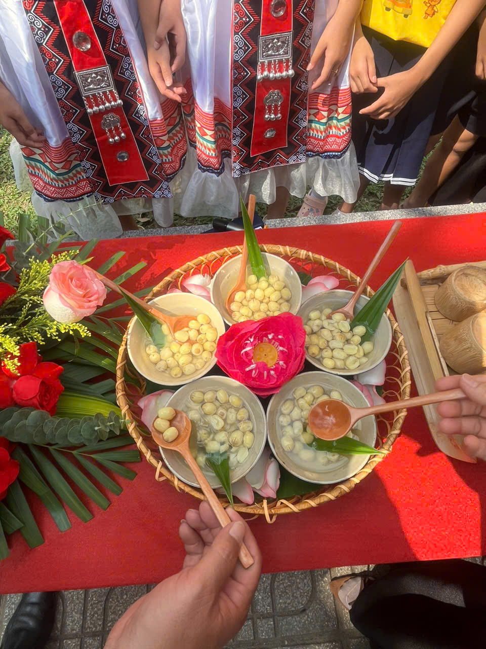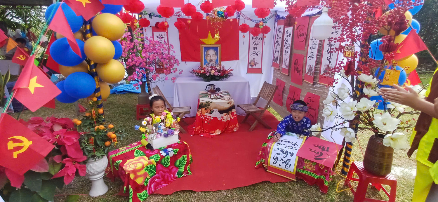 Ngay từ sáng sớm, sân trường Lê Hoàn đã thay áo mới với những cổng trại rực rỡ hoa mai, hoa đào và những câu đối đỏ. Tiếng nhạc xuân rộn rã cùng nụ cười rạng rỡ của các bạn nhỏ trong những bộ đồng phục, bộ đồ thể thao năng động đã tạo nên một bầu không khí vô cùng náo nhiệt.